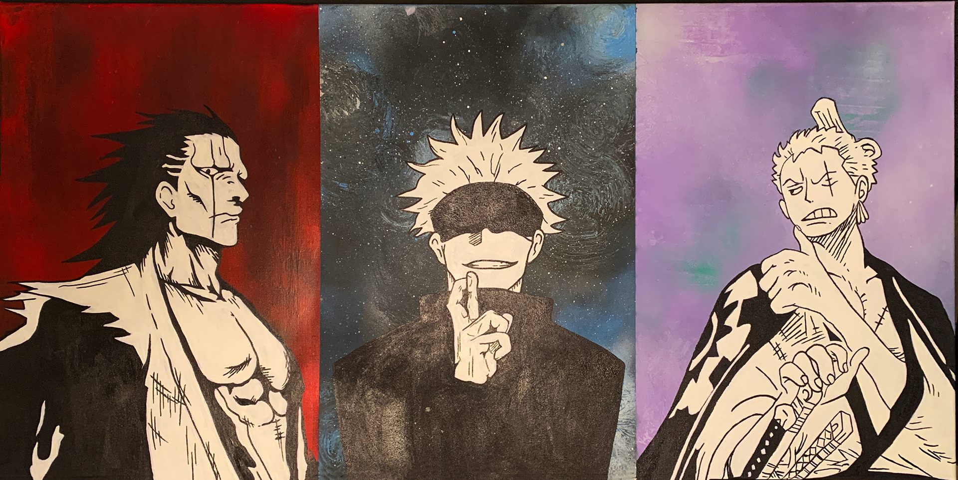 Commission piece, done with spray paint in the background and acrylic paintÂ