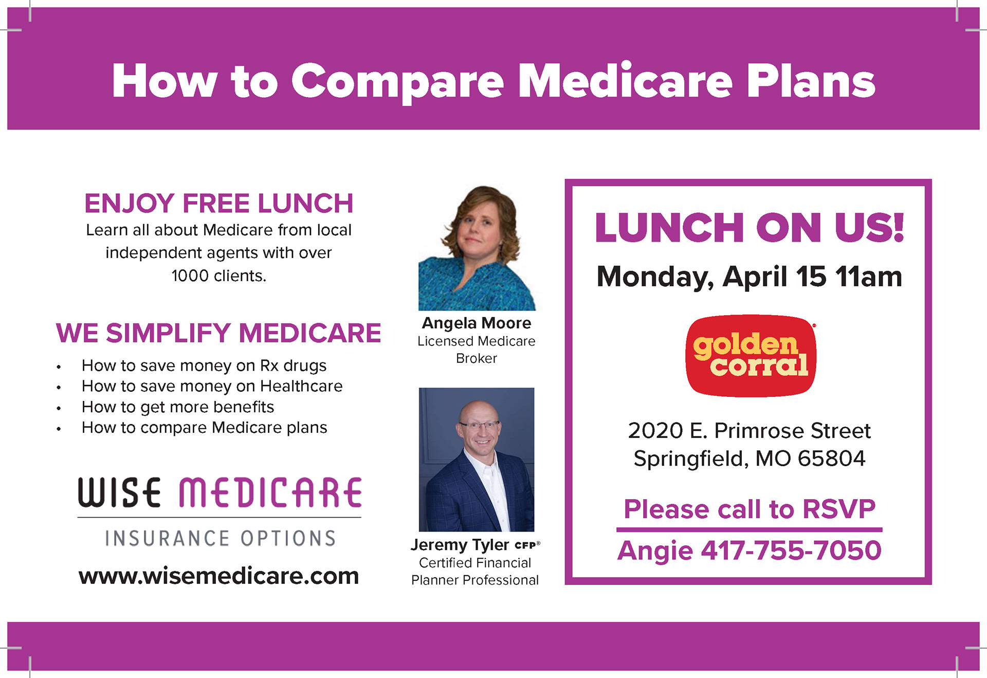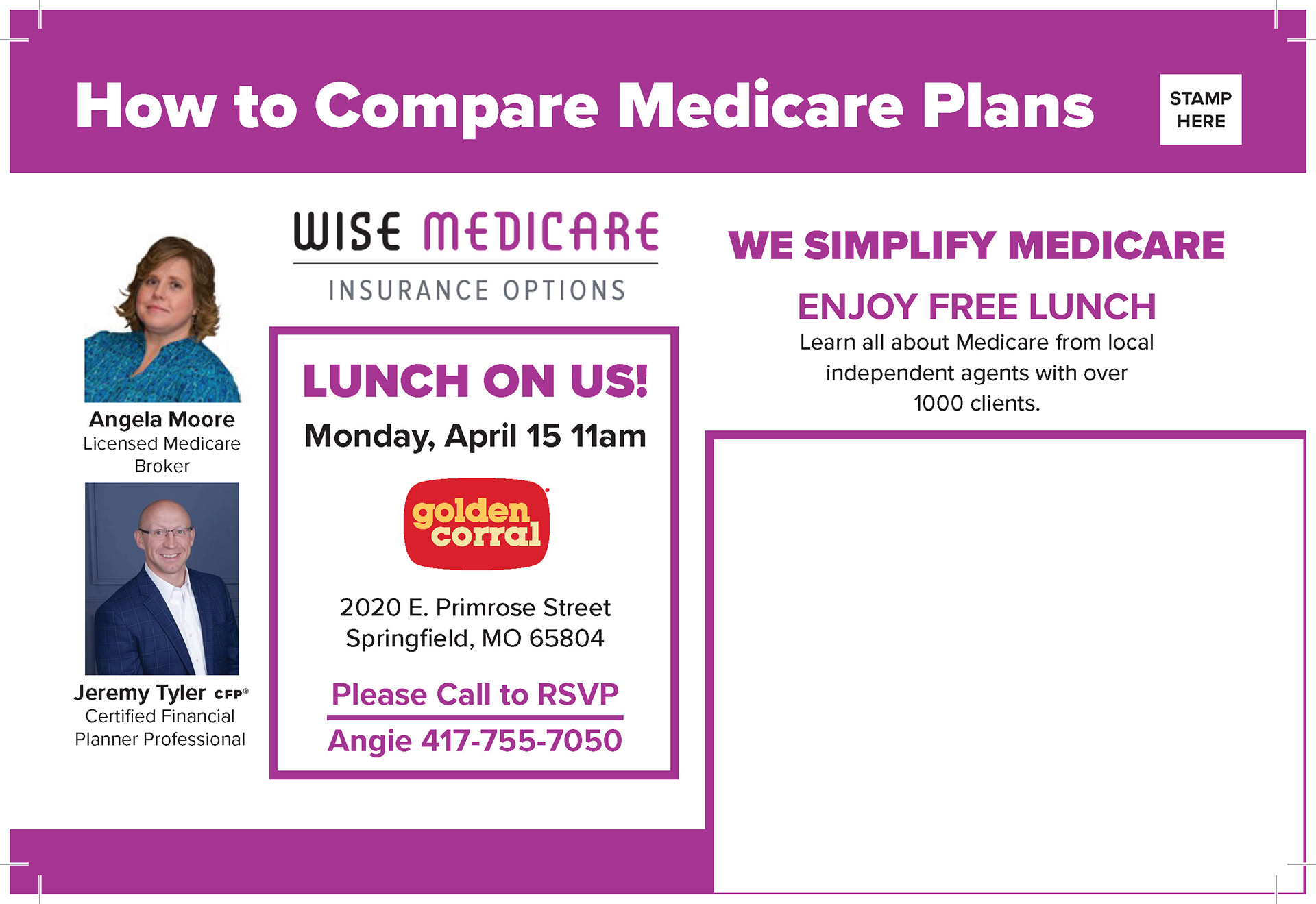 Wise Medicare, a branch of Wise Wealth, needed a postcard redone for its upcoming lunch event.